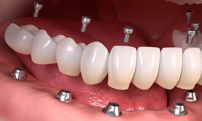 Where a complete arch of teeth has been lost, implants provide a revolutionary solution for replacing them.